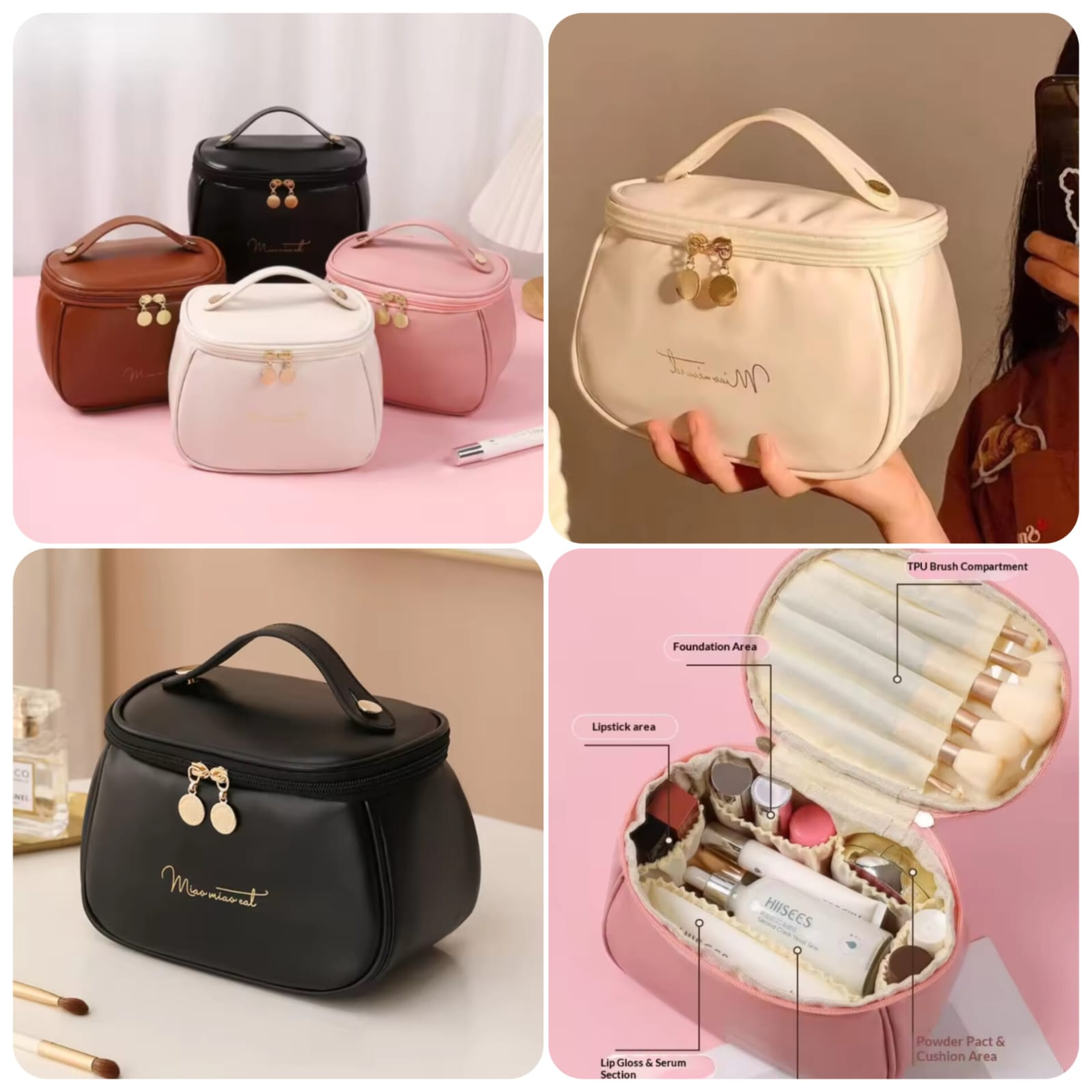 Elevate your travel beauty routine with this elegant PU leather cosmetic pouch. Designed for the modern woman who values both style and functionality, this pouch keeps your makeup, skincare, and toiletries neatly organized and easily accessible. The premium PU leather exterior offers a luxurious look while being durable and easy to clean.